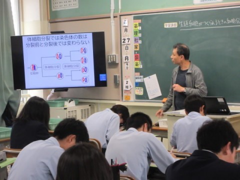 「生殖細胞がつくられるときの細胞分裂」が今日の学習課題です。
