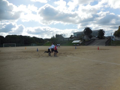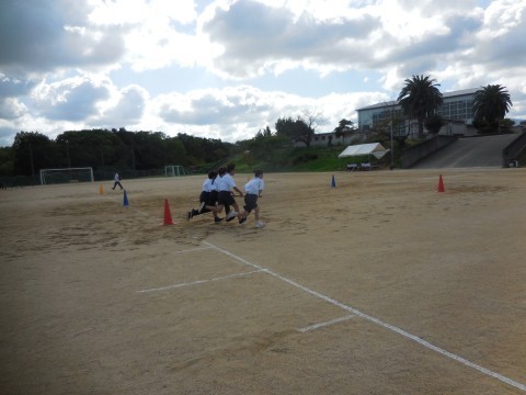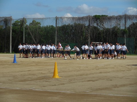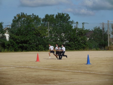 いよいよ体育大会が目前に迫ってきました。明日の予行練習を前に1年生が学年種目の練習をしていました。