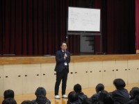 校長先生から2011年に起こった東日本大震災の話があり,避難所での中学生のエピソードについてのお話がありました。