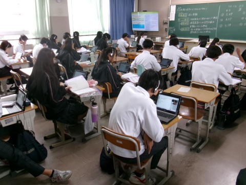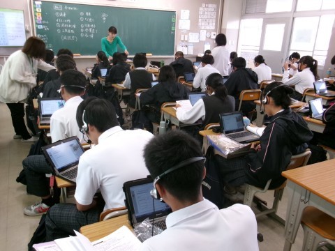 本日、2限目から4限目まで2年生の各クラスで、オンライン英会話を行いました。