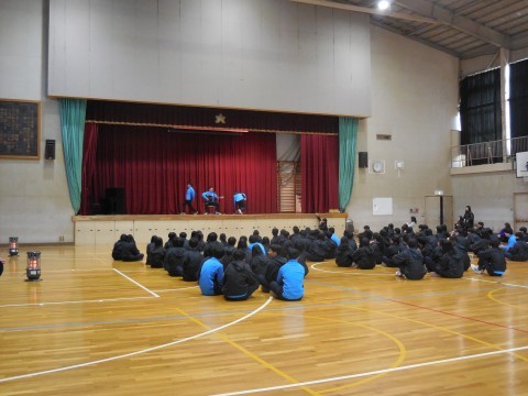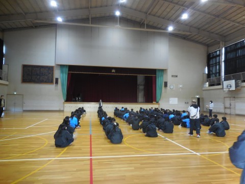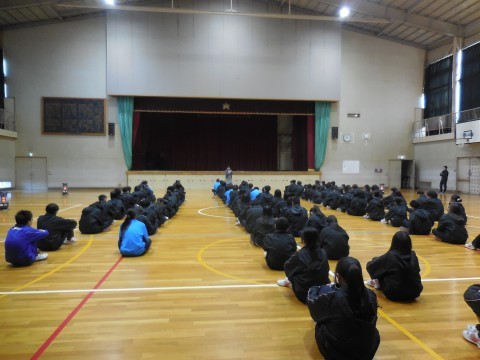本日5時間め,2年生は外部から講師の先生をお呼びし,体育館でデートDVの授業を実施しました。