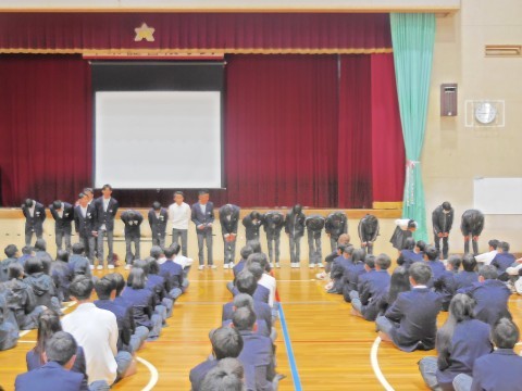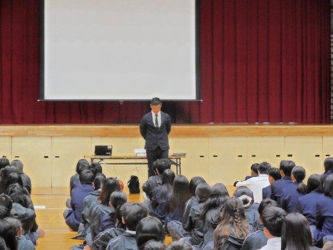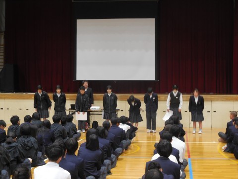 校長先生のお話の後に生徒指導主事の先生から,日々大切にしてほしいことや春休みの過ごし方についてお話がありました。