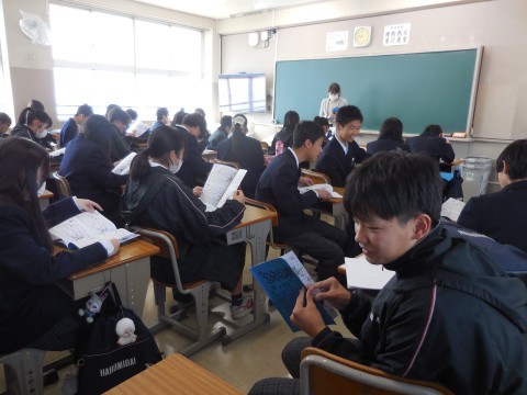 今年度最後の学活です。担任の先生からのお話を聞きながら1年間を振り返っていました。
