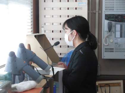 今日は,学校薬剤師の先生に来ていただいて,プールの水質検査と配膳室の衛生検査をしていただきました。