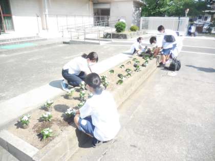 子どもたちと保護者の皆さんで,夏に向けての花を植えました。参加いただいた保護者の皆さまありがとうございました。 -