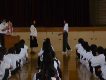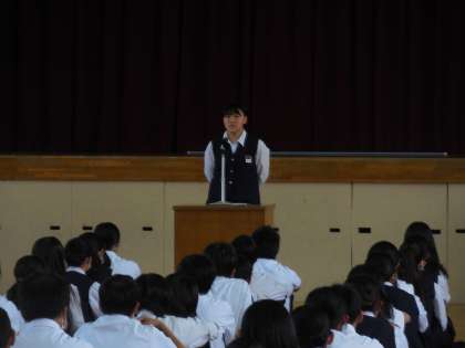 進路指導主事の先生からは、1、2年生の復習の大切さや進路に向けて3年生としての自覚をもった夏休みをすごしてほしいという話がありました。