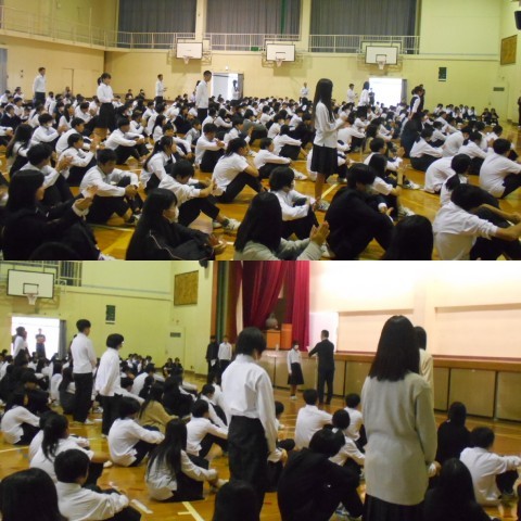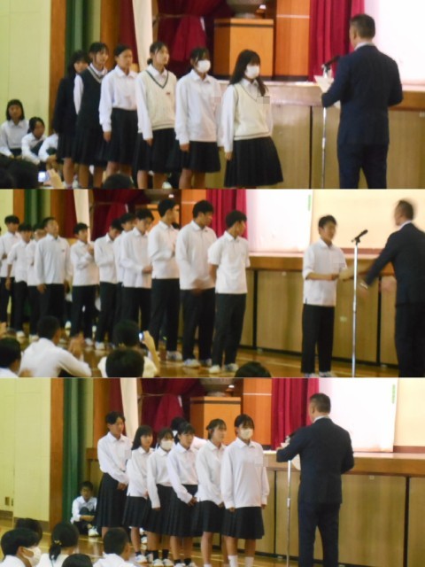 前半は認証式を行いました。後期の生徒会役員や各種委員を認証しました。