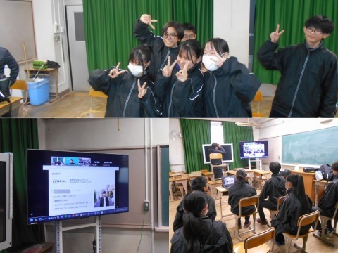 若松台中と東京の中学校をオンラインでつないで,生徒会役員が交流しました。