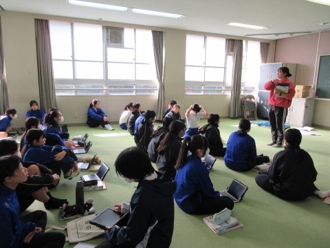 写真は4限目の3組の様子です。みんな集中して講師と会話をしています。
