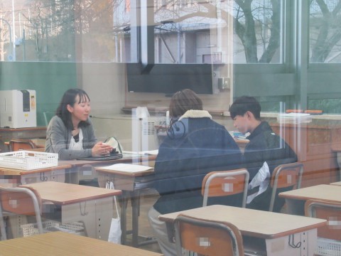 3年生は、進路実現にむけて私学受験校の確認、1、2年生は2学期を振り返り、今後もより良い方向につなげるための懇談を行っています。