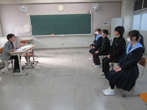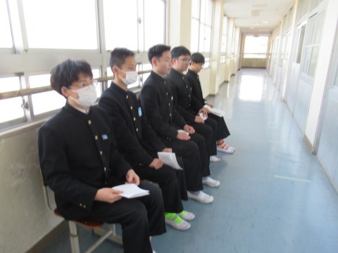 本日5、6限めに行った入試にむけての3年生面接練習。