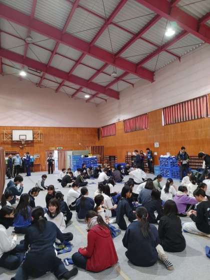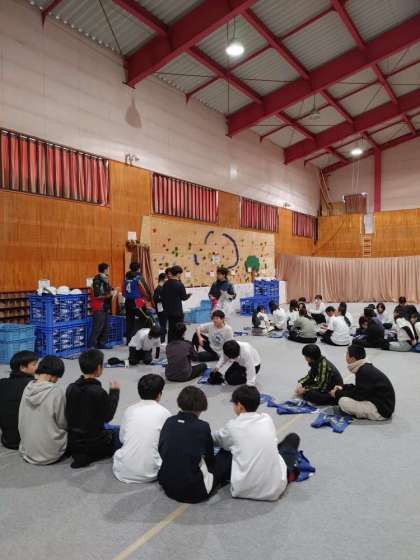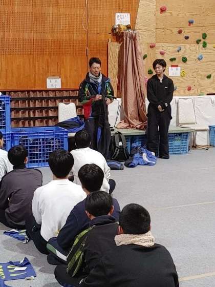 今からスキーウェアに着替えます。着替えの説明を聞いています。