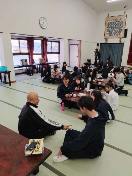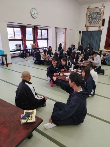 突然始まるあっちむいてホイ。熱い戦いはまだまだ続いていたようです。食事会場でも。
