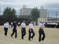 列を乱さずテキパキ食缶を運ぶことが時間短縮につながっています。