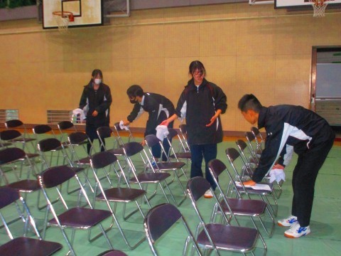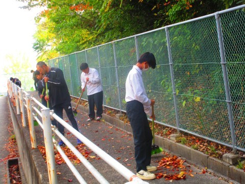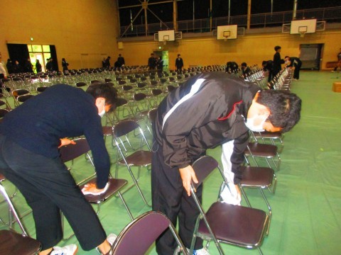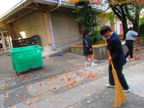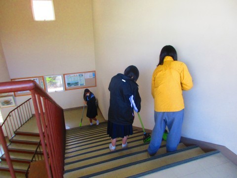 体育館は3年生、外回りや校舎の清掃は1年生が行っています。