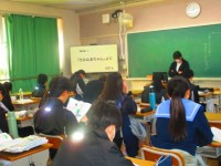 本日3年生の英語授業は、ジェーコブ先生と一緒に学ぶ授業です。