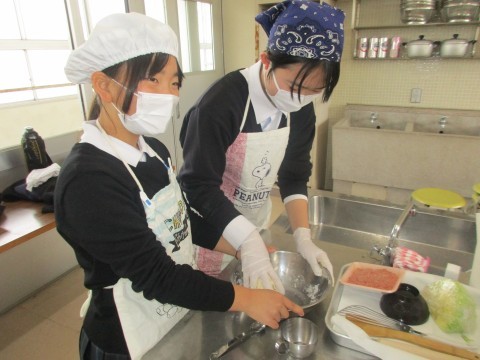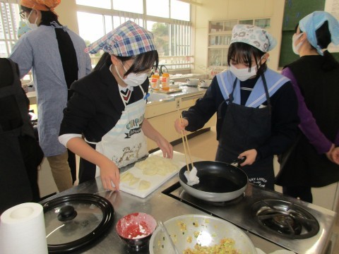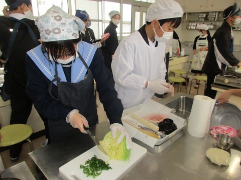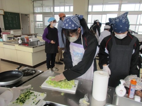 昨日の1年2組に続き、今日は1年1組の調理実習。