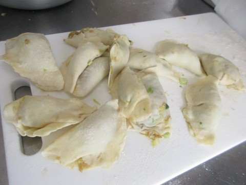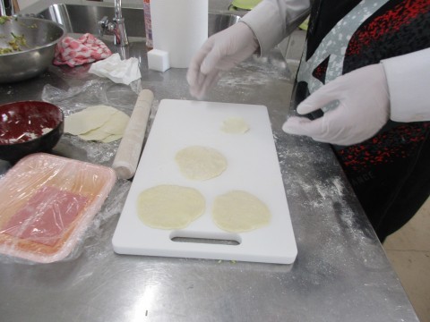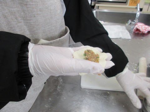 具材を切る包丁さばきも手際よく、ギョウザの皮づくりから具を包む作業もポイントを押さえ、進められています。