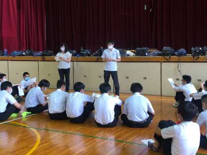 卓球部ミーティングの様子。