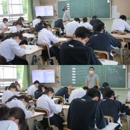 2年生課題復習テストの様子。