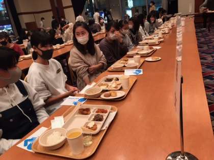 2日目のホテルの感染対策は、座席がスクール形式。おかわりも自分の好みの食材を入れて頂けます。