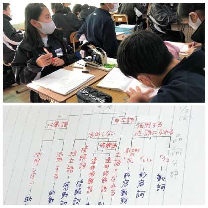 品詞分類表を書き写し、理解を深める学習。