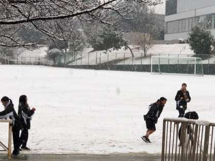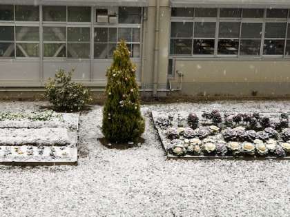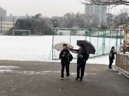 雪が降る中の登校です。