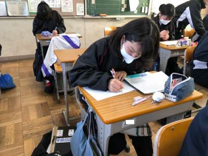 中学校生活を振り返りながら取り組んでいます。