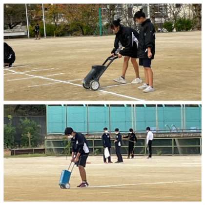 正確なライン引きをしてくれた陸上部のみなさん、ありがとう!