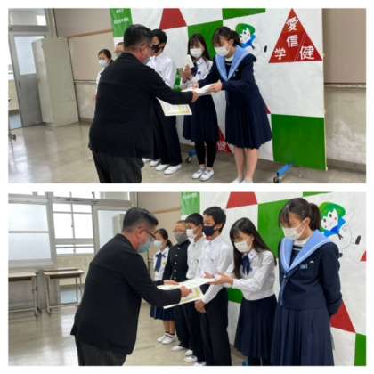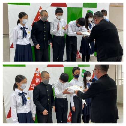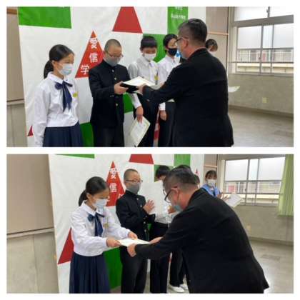 本日6限リモートで、後期生徒会の認証式を行いました。