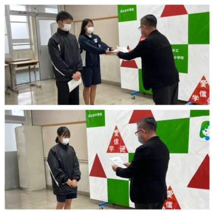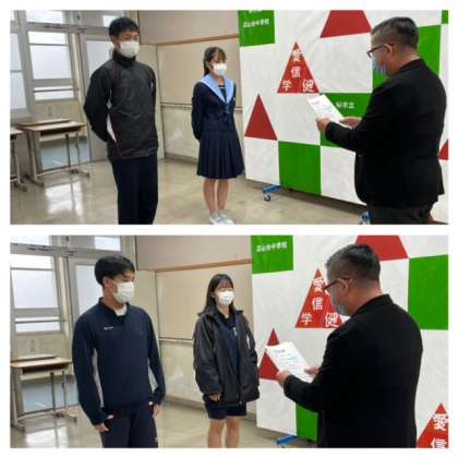 生徒会役員の認証の後、後期専門委員の認証を行いました。