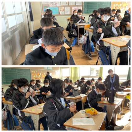 1年2組家庭科授業の様子。