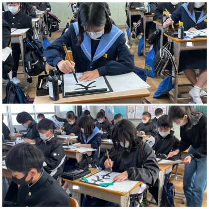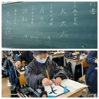 今日は、点画の変化を学ぶため「大木」と書いています。