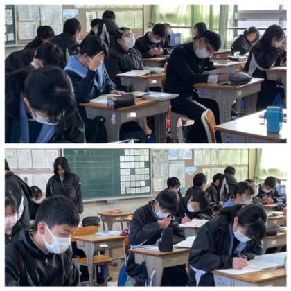 今日は英語の暗唱テストにむけて、各自工夫しながら学習を進めています。