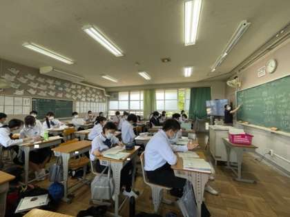 3年1組数学授業の様子。