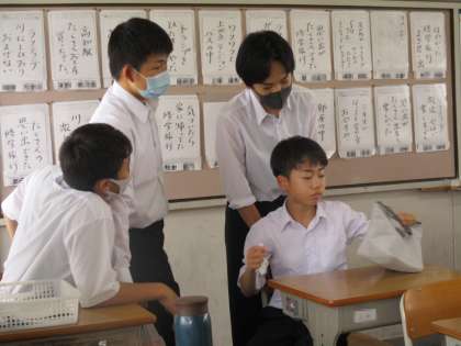 グランドで体を動かしたり、進路情報を調べたり、昼休みを有効に使っています。