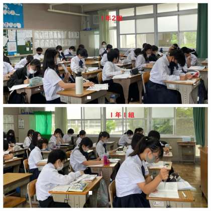 写真は朝学活の様子。