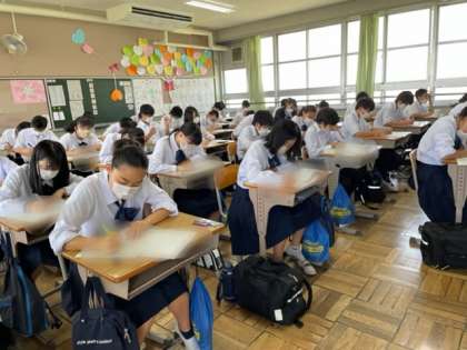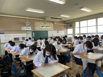 2年生数学テストの様子。
