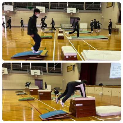 今日から器械運動(跳び箱運動)に取り組んでいます。