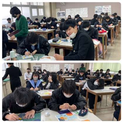 3年2組美術授業の様子。