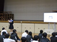 朝の時間を使って、生徒会が実施したネットいじめ防止アンケートの結果が発表されました。