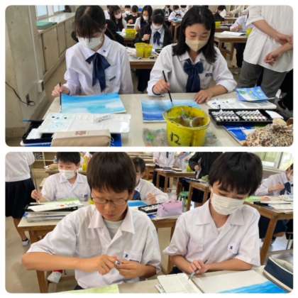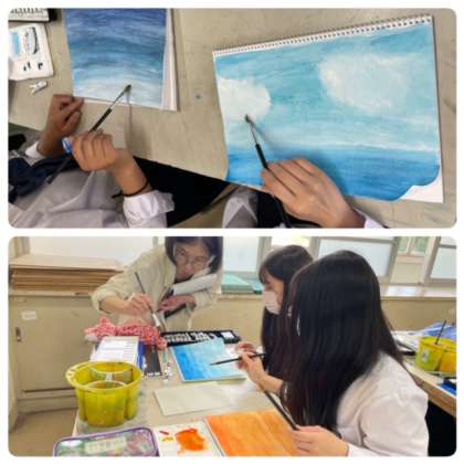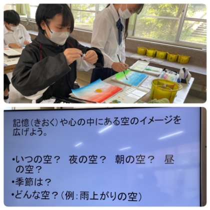 「記憶や心の中にある空のイメージを広げよう」と心にうかぶ空を描いています。