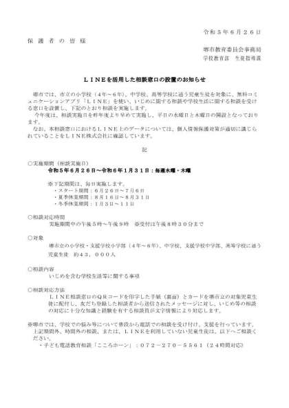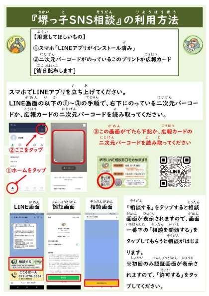 本日、「堺市LINE相談窓口について」のお知らせを配布しました。