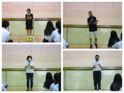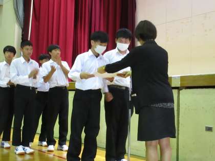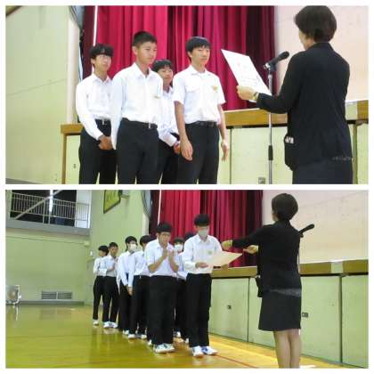 伝達表彰では卓球部堺市種目別大会団体戦3位、個人戦ダブルスYさん、Rさんペア準優勝、野球部堺市種目別大会3位の表彰を行いました。