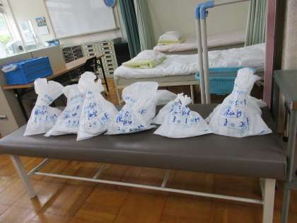 ※各クラスの保健安全委員のみなさんが検尿を保健室まで持ってきてくれました。