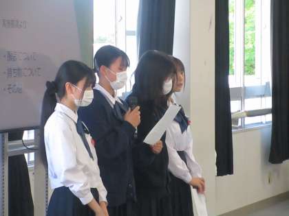 また、後半の修学旅行説明会では、学年主任T先生が行程や持ち物、提出書類について説明、実行委員が取り組みについての状況を報告をしました。