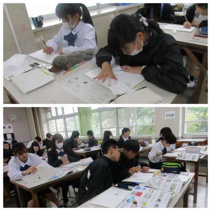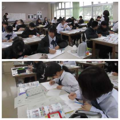 1年1組美術授業の様子。