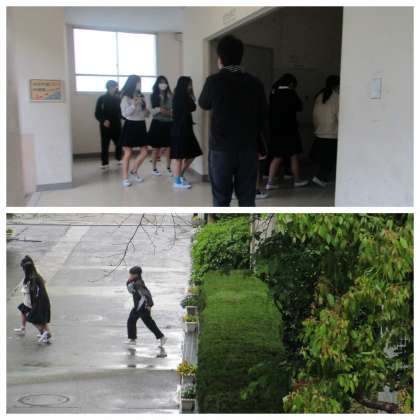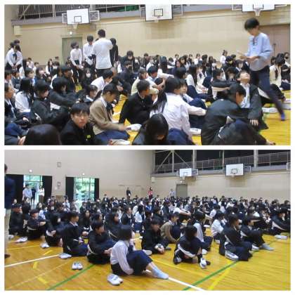 雨天のため体育館への避難となりましたが、迅速に行動し、避難経路も確認することができました。