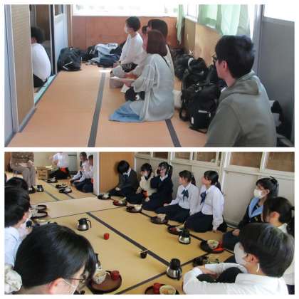部活動保護者説明会サッカー部、バレーボール部、茶華道部の様子。