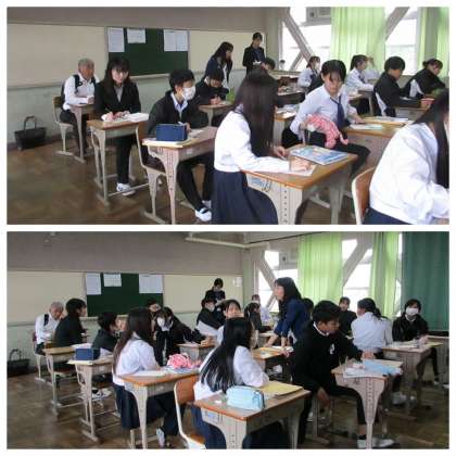 今日は教育委員会の先生をお招きし、2年生の授業を見ていただきました。
